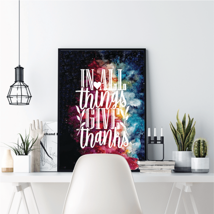 In All Things Give Thanks Poster | Gratitude Quote Print, Vibrant Artistic Style, Ideal For Living Rooms Bedrooms Offices, Uplifting Encouragement Gift